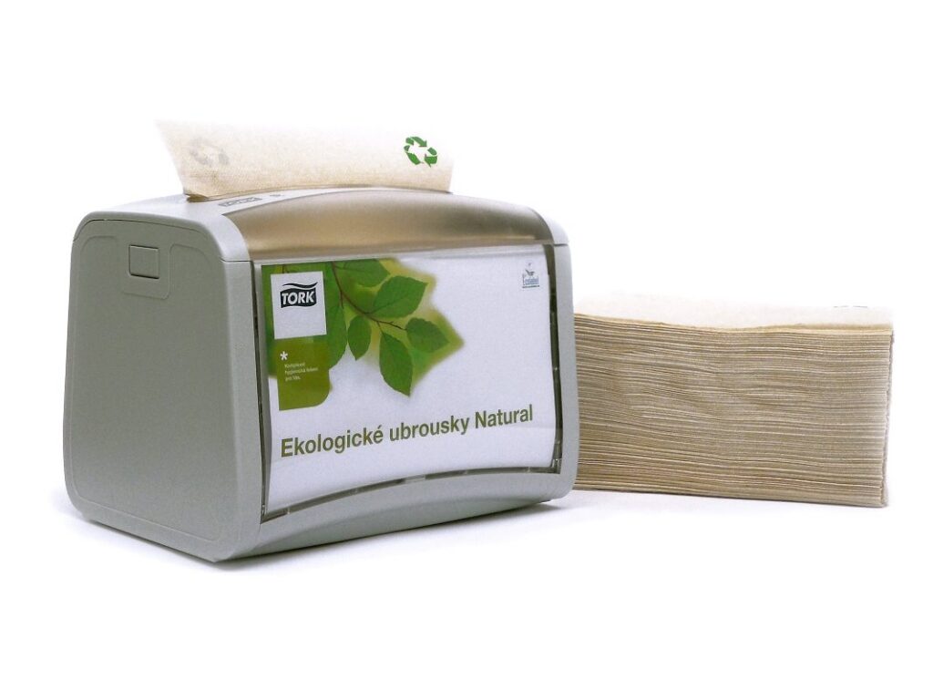 Přírodní ubrousky Natural do zásobníků Xpressnap jsou ze 100% recyklovaných papírových vláken a při jejich výrobě nebyla použita žádná bělidla či přídavná barviva. Samotné zásobníky Xpressnap jsou také ekologické – jsou koncipovány tak, aby bylo možno vyjmout jen jeden ubrousek v daný čas. Každý zákazník tak použije jen tolik ubrousků, kolik skutečně potřebuje. Díky tomu se snižuje spotřeba ubrousků nejméně o 25 % v porovnání s tradičními ubrousky do zásobníku a zároveň se zlepšuje hygiena a komfort pro uživatele.