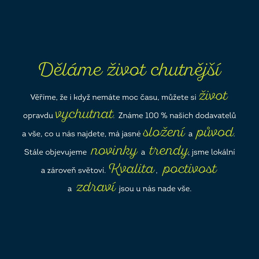 Sjednocení pod jednu značku je jedním z prvních kroků v naší vizi budování široce dostupných prodejen zdravého životního stylu. Sklizeno i Náš Grunt vznikaly v době, kdy byl hlavní důraz kladený na farmářské a lokální, po šesti letech už jsme ale dál a chceme zákazníkům nabídnout kvalitní potraviny v mnohem širším měřítku a v modernějším pojetí. I proto prodejny i vizuálně posouváme od farmářského vzhledu směrem k modernějšímu, čistšímu designu, který více odpovídá jejich nabídce, popisuje vývoj konceptu Sklizeno David Kukla, zakladatel Sklizeno.