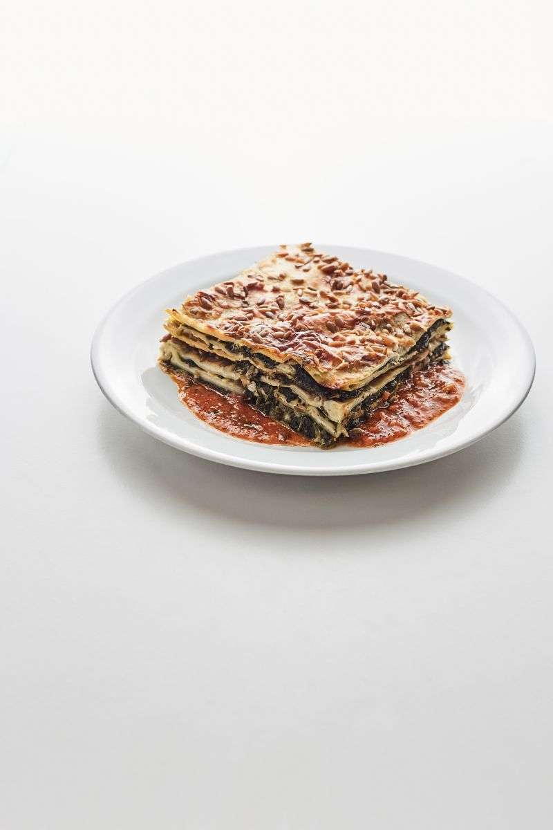 špenátové lasagne s ricottou a slunečnicovými semínky