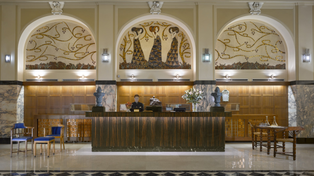 Zvláštní pozornost si vyžádal malovaný strop v recepční hale hotelu. Při zahájení prací byl významně poničený. Tým proto navrhl nový dekor, který ladí s motivy na kobercích a je doplněn lipovými listy jako symbolem češství – odkazem na českou identitu záložny.