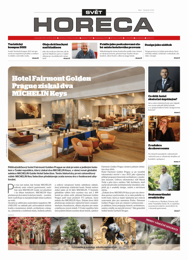 Noviny SVĚT HORECA jsou formou předplatného + direct mailu + mailingu distribuované v Česku na management a provoz restaurací, kaváren, cukráren, barů, dodavatele, odborné školy a organizace. Počet vydání za rok: 6