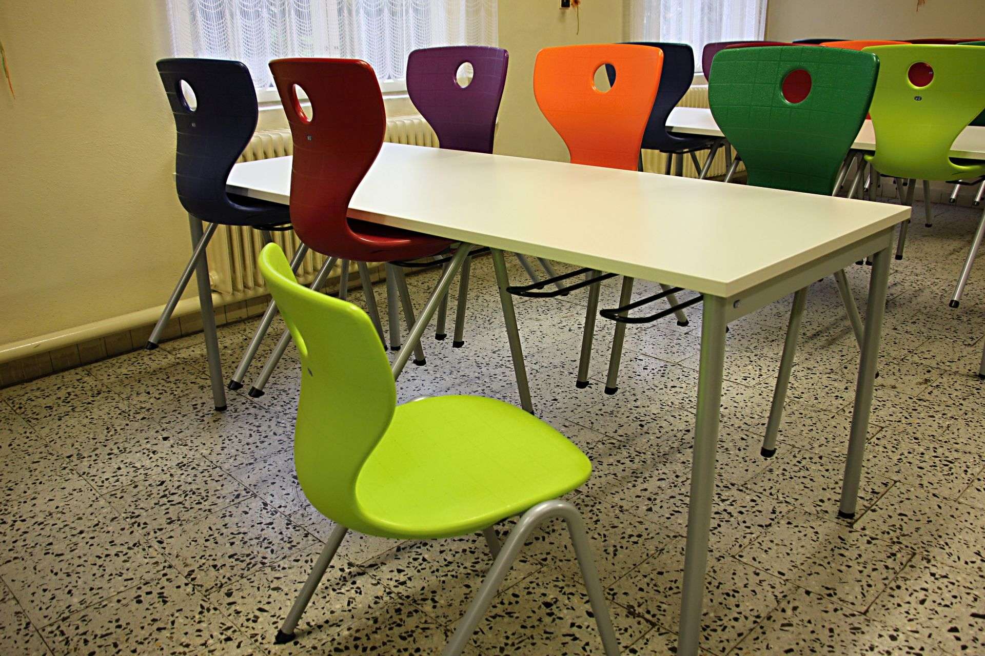 To samozřejmě možné je. Nic není vázané ničím, tedy škola si může v jeden čas obměnit co chce a následně své nové kusy nábytku postupně doplňovat. Barvy sedáků, a i technické řešení se drží již mnoho let a jisto jistě i nadále bude. Jídelny se ale obvykle vybavují jako celek, takže výše zmiňovanou variantu zřizovatelé používat moc nechtějí.
